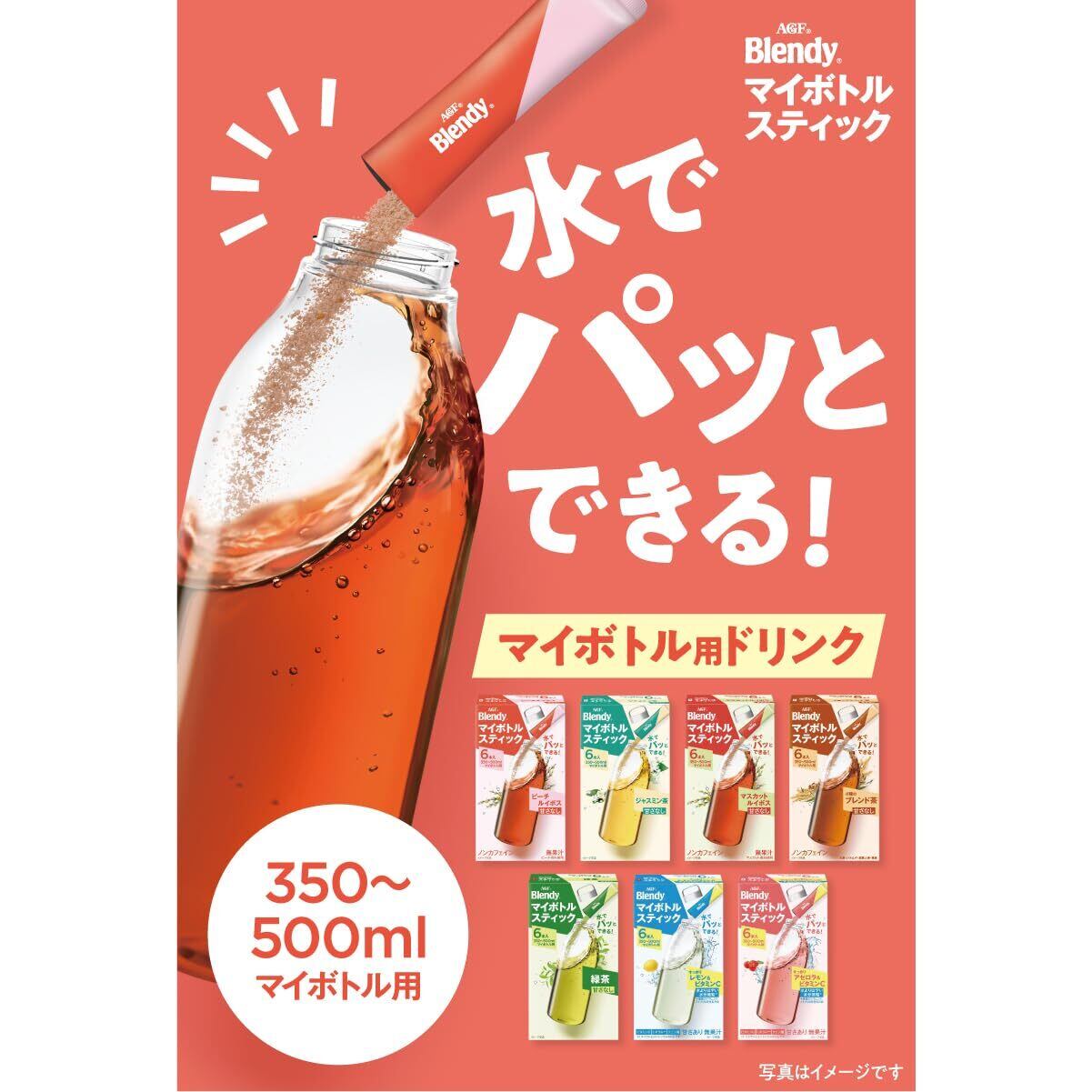 「Blendy(ブレンディ)」 マイボトルスティックは、水またはお湯にスティックを1本入れて振るだけで1日を楽しめるマイボトルサイズのパウダードリンクです。スティック1本で350ml~500mlのマイボトル1本分。