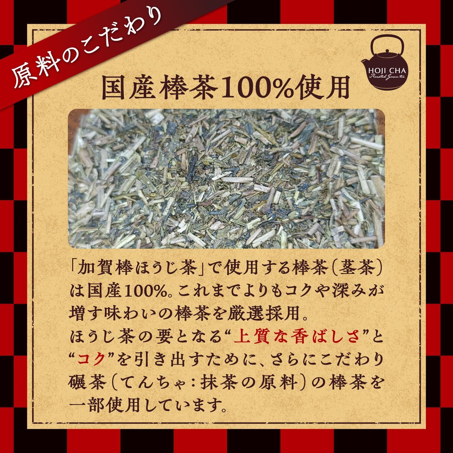茶の茎部分を使った棒茶を、職人が伝統的な焙煎方法で仕上げた、金沢発祥の加賀棒ほうじ茶です。 すっきりと澄んだ味わいと華やかな香りで飲み飽きることなく、伝統や職人の想いが感じられ、一口飲むたびに幸せな気持ちになります。