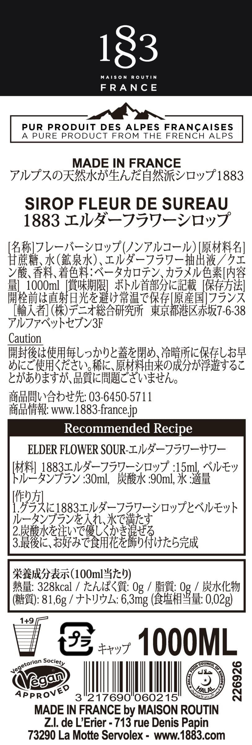 1883 Maison Routin (メゾン・ルータン) エルダーフラワー シロップ 1000ml