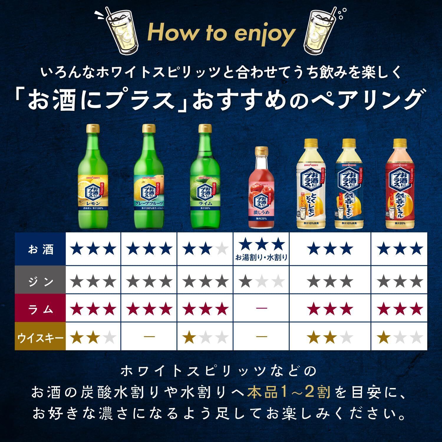 お好きなハードリカー(焼酎、ウォッカ、ジンなど)にプラスするだけで、果汁感のある本格的なおいしさが手軽に味わえる、保存料無添加の100%レモン果汁です。 お酒に加えて最適なおいしさに仕上がるよう、マイルドな酸味のレモン果汁を使用しています。