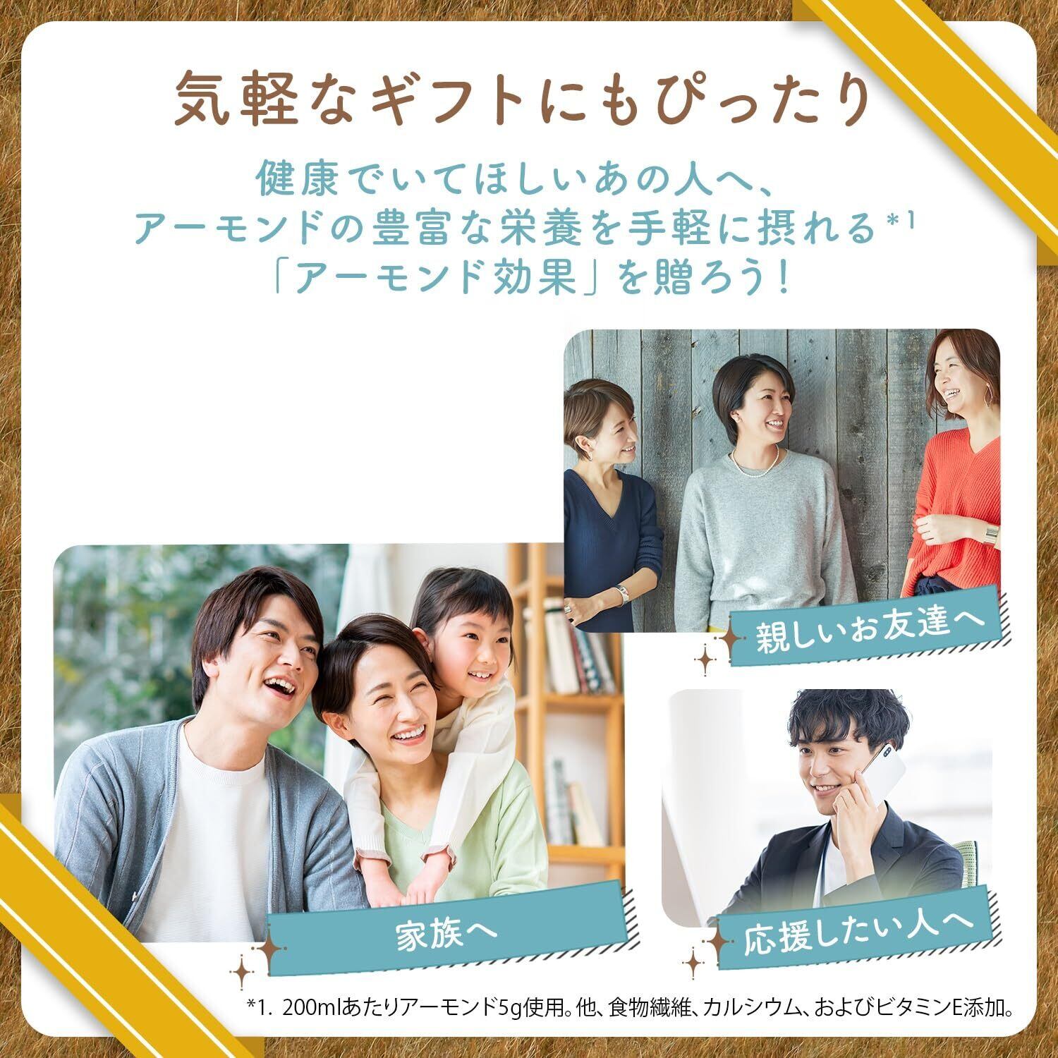原材料:アーモンドペースト(アーモンド(アメリカ))、食物繊維(イヌリン)、食塩、アーモンドオイル加工品/セルロース、pH調整剤、クエン酸Ca、乳化剤、香料、ビタミンE、(一部にアーモンドを含む)