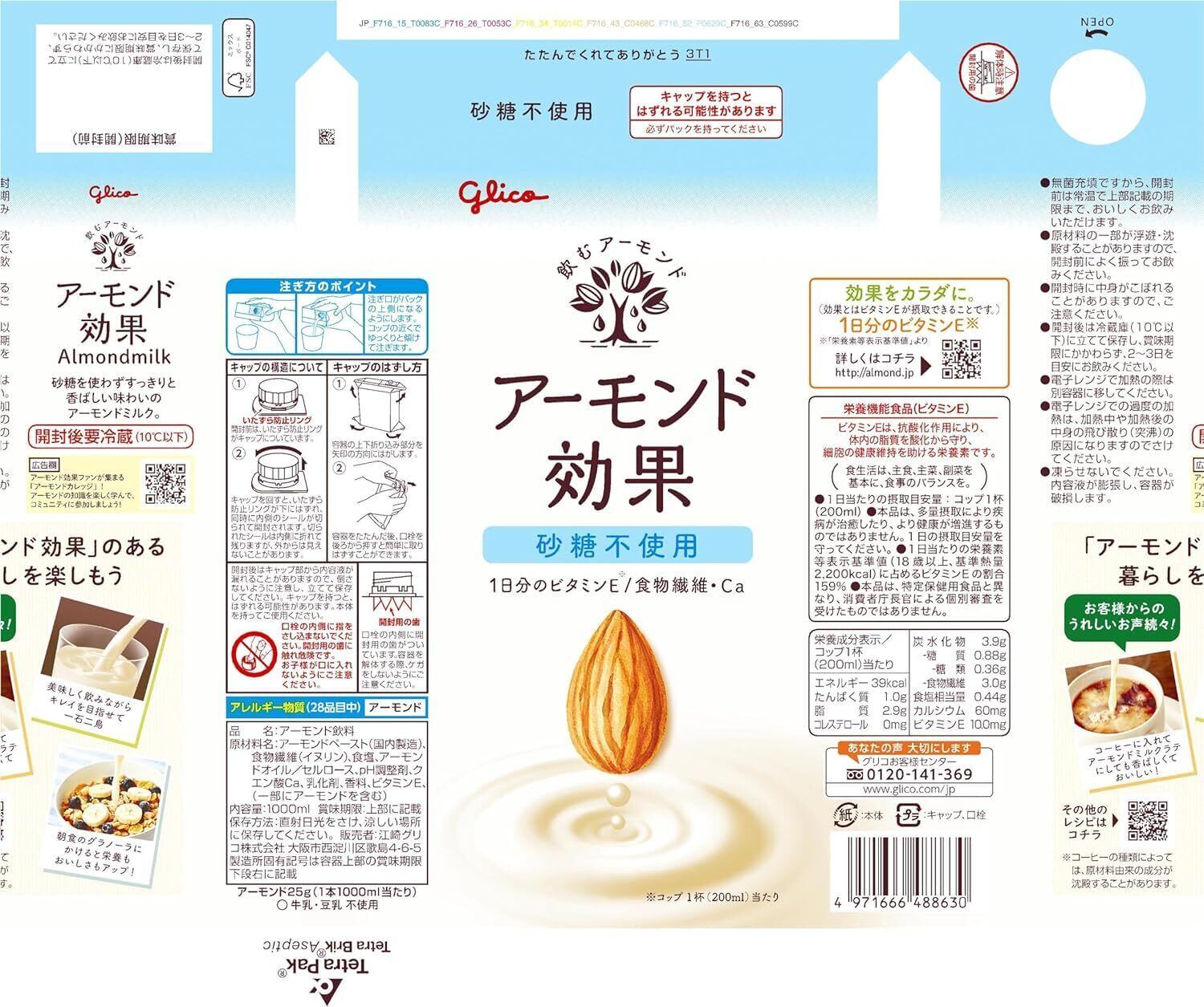 アーモンド効果 砂糖不使用 1000ml×4本 江崎グリコ 常温保存可能 ビタミンE 食物繊維 アーモンドミルク