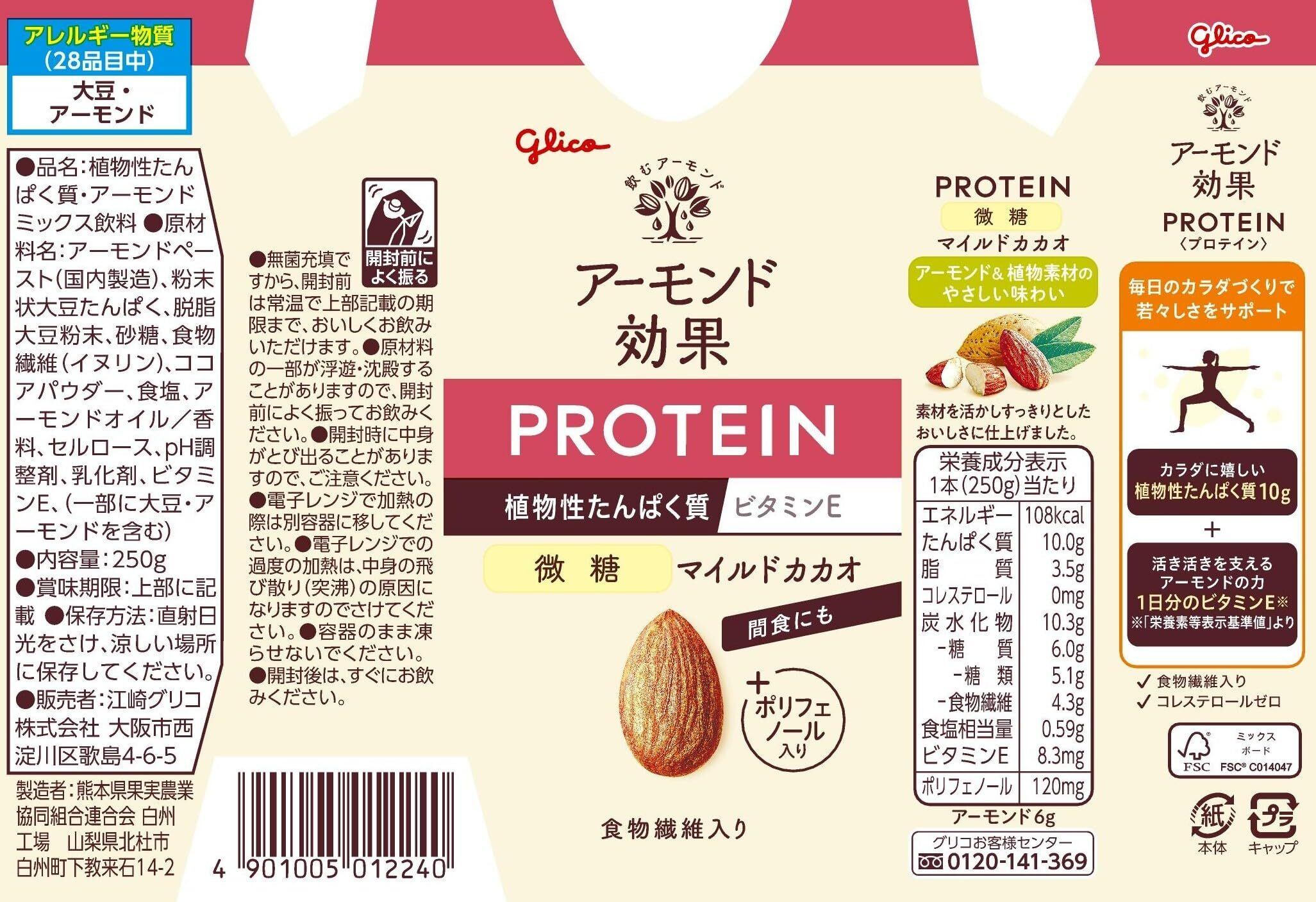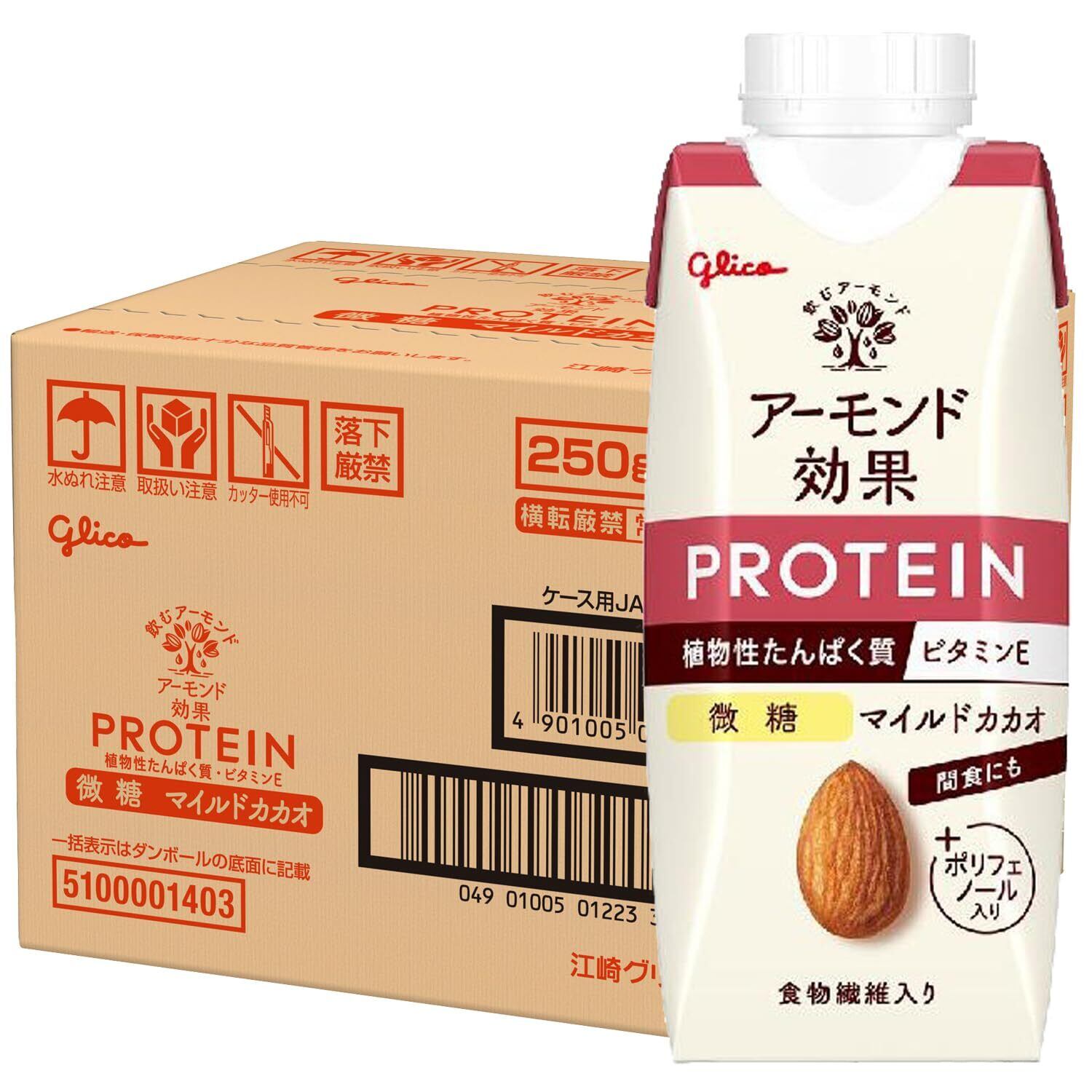 アーモンド効果 プロテイン マイルドカカオ 微糖 江崎グリコ 常温保存可能 ビタミンE 食物繊維 アーモンドミルク 250g×12本