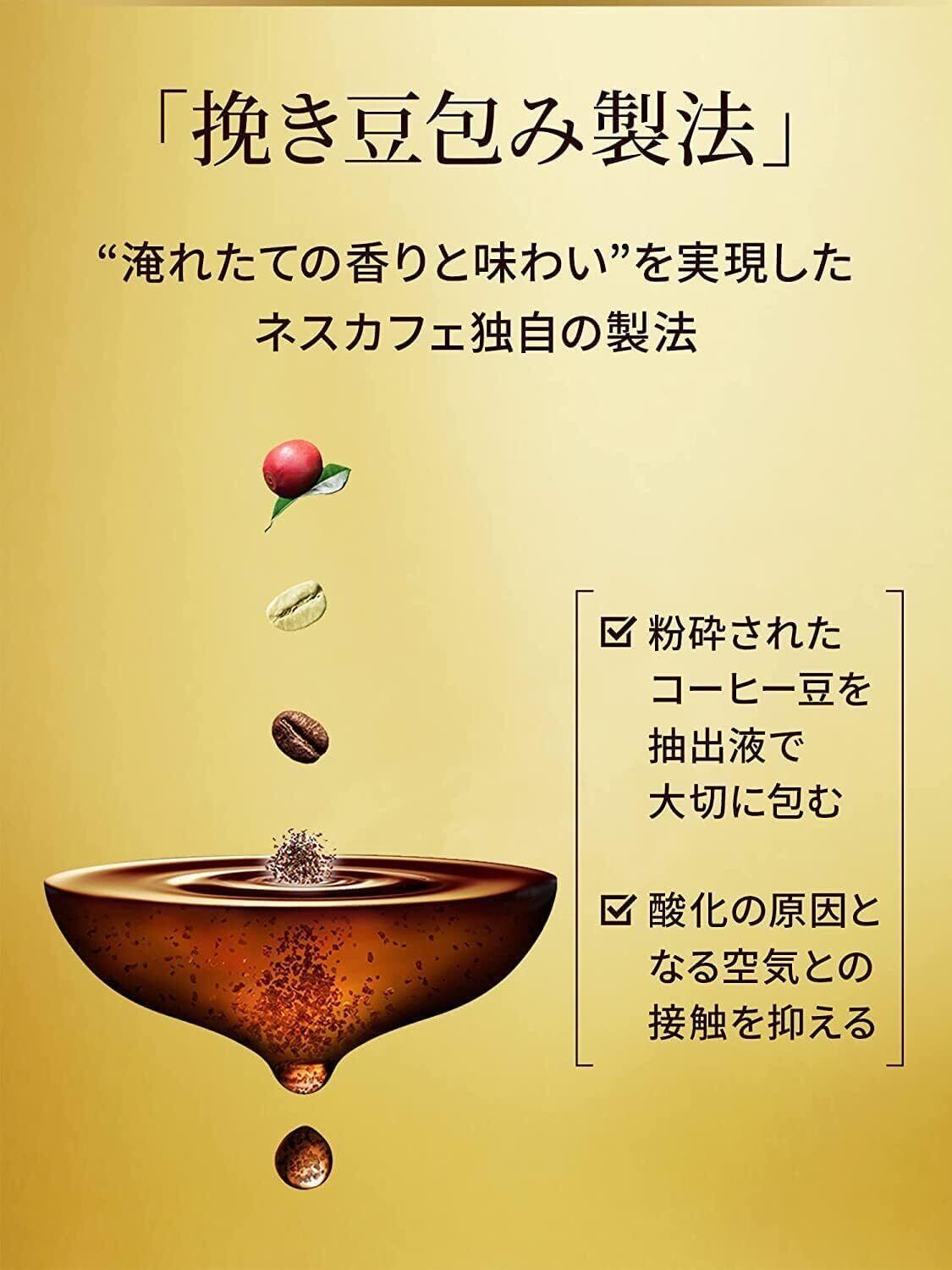 ネスカフェ ゴールドブレンドは、微粉砕した焙煎コーヒー豆の粒を包み込むことで、淹れたての上品な香りとコーヒー本来の味わいを実現した「レギュラーソリュブルコーヒー」です。