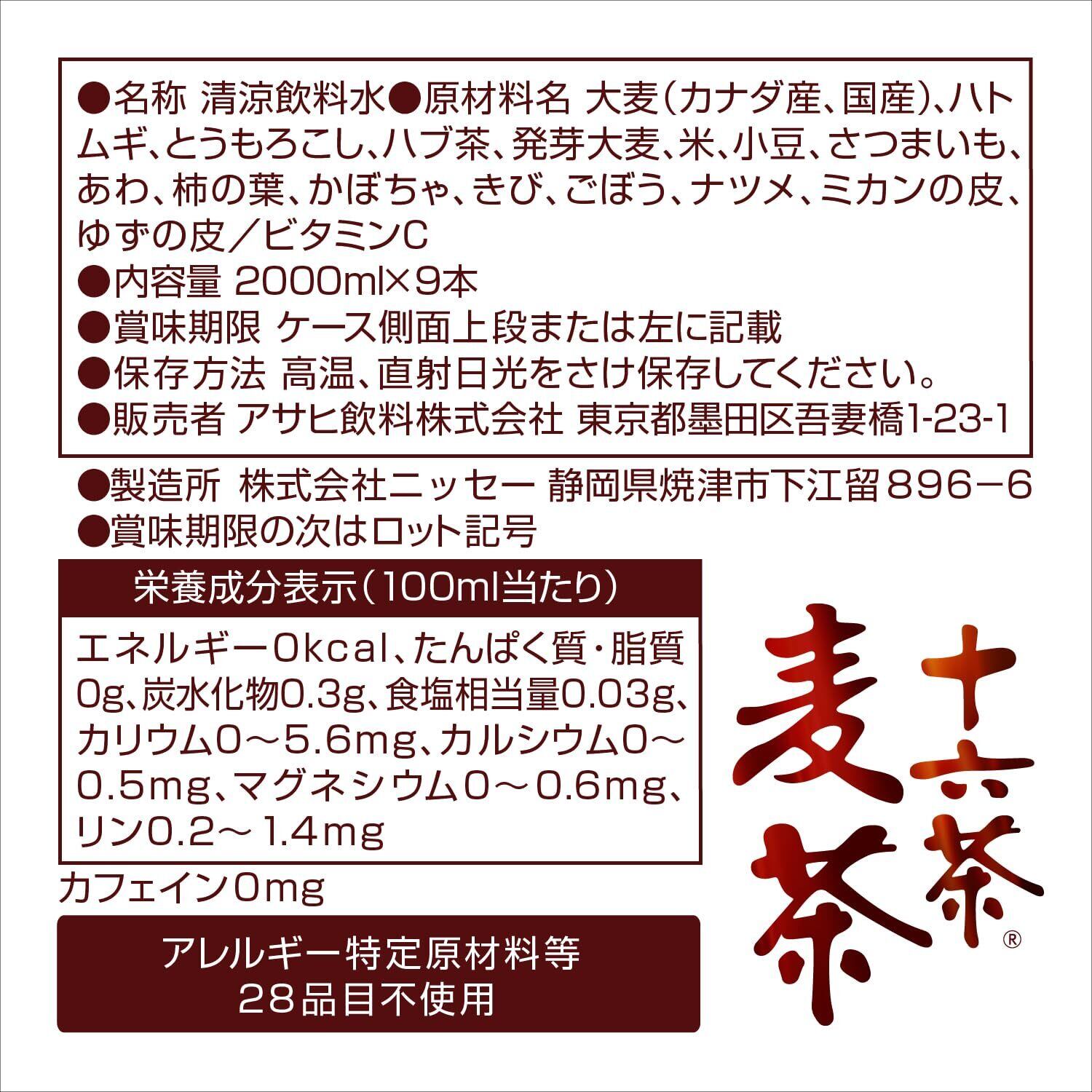 アサヒ飲料 アサヒ 十六茶麦茶 ラベルレスボトル 2L×9本