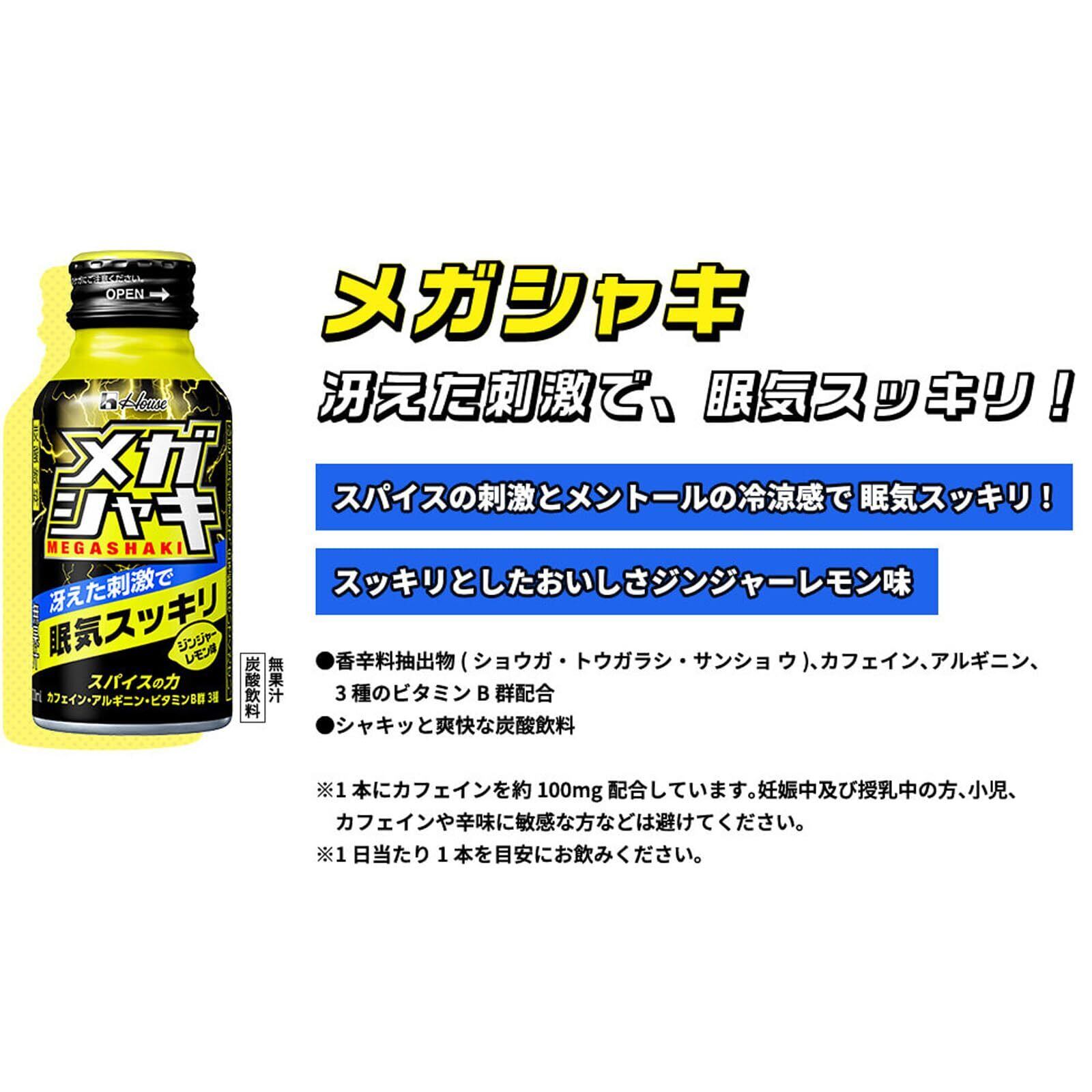 メガシャキ(アクティブデザイン) 100ml×6本 ジンジャーレモン味(無果汁)・炭酸飲料 スパイスの刺激と冷涼感で眠気スッキリ、仕事、勉強、運転、趣味でのシャキッとした頑張りをサポート ハウスウェルネスフーズ | 毎日発送✿はなまる