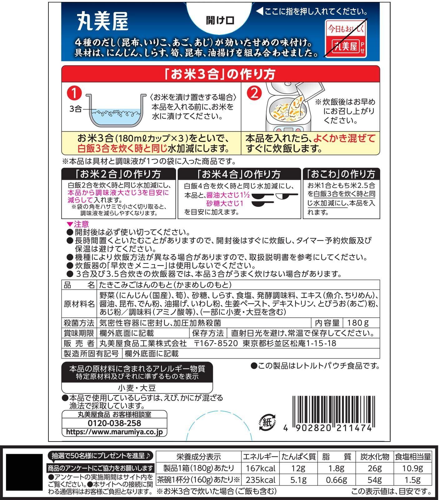 丸美屋 しらすめしの素(炊き込みご飯の素) 3合用 180g×5個