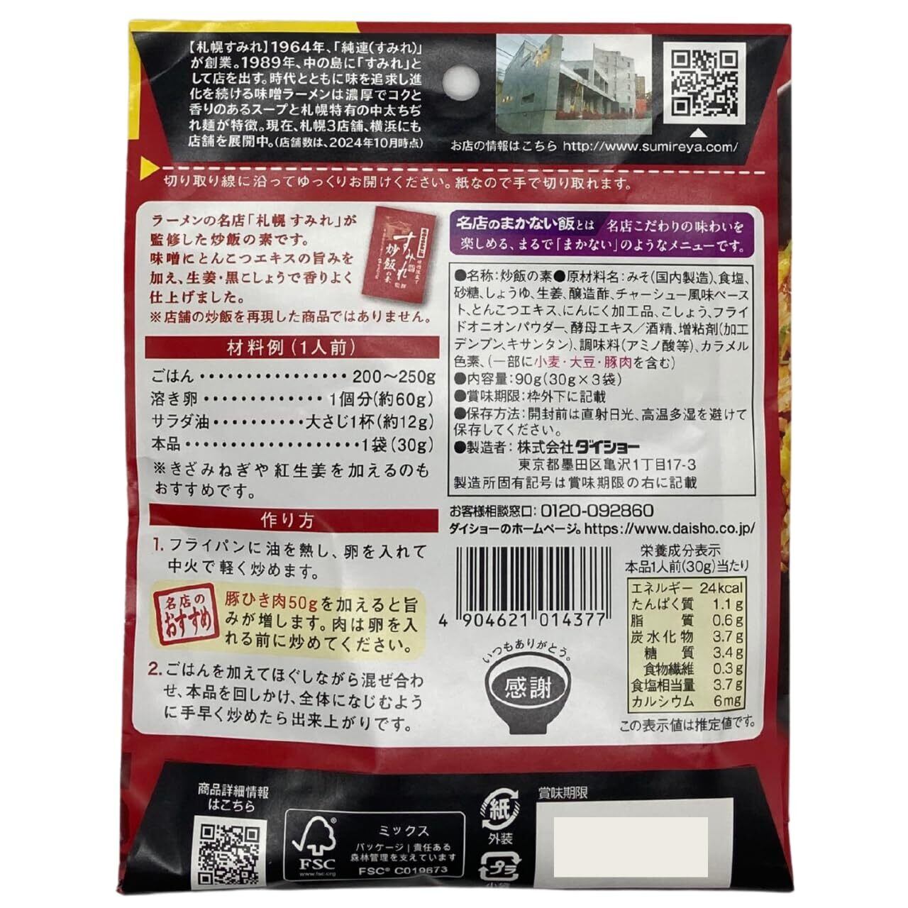 ダイショー 名店のまかない飯 すみれ監修炒飯の素 ×2袋セットです。 ラーメンの名店「札幌 すみれ」が監修した炒飯の素です。 味噌にとんこつエキスの旨みを加え、生姜・黒こしょうで香りよく仕上げました。