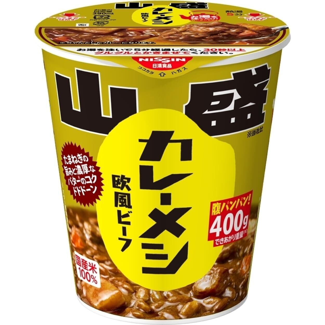 山盛カレーメシで腹パンパン! 日清カレーメシシリーズから大容量商品「山盛」が登場。