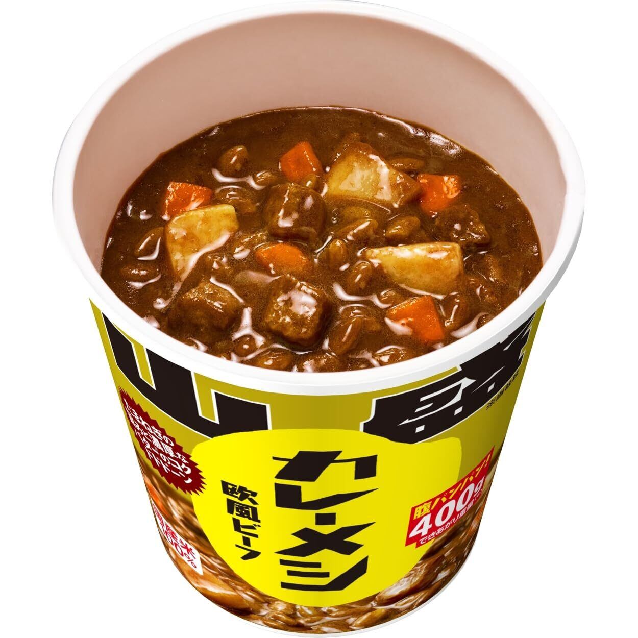 「日清カレーメシ 欧風ビーフ」のおいしさそのままに、できあがり重量400gで腹パンパンの満足感!