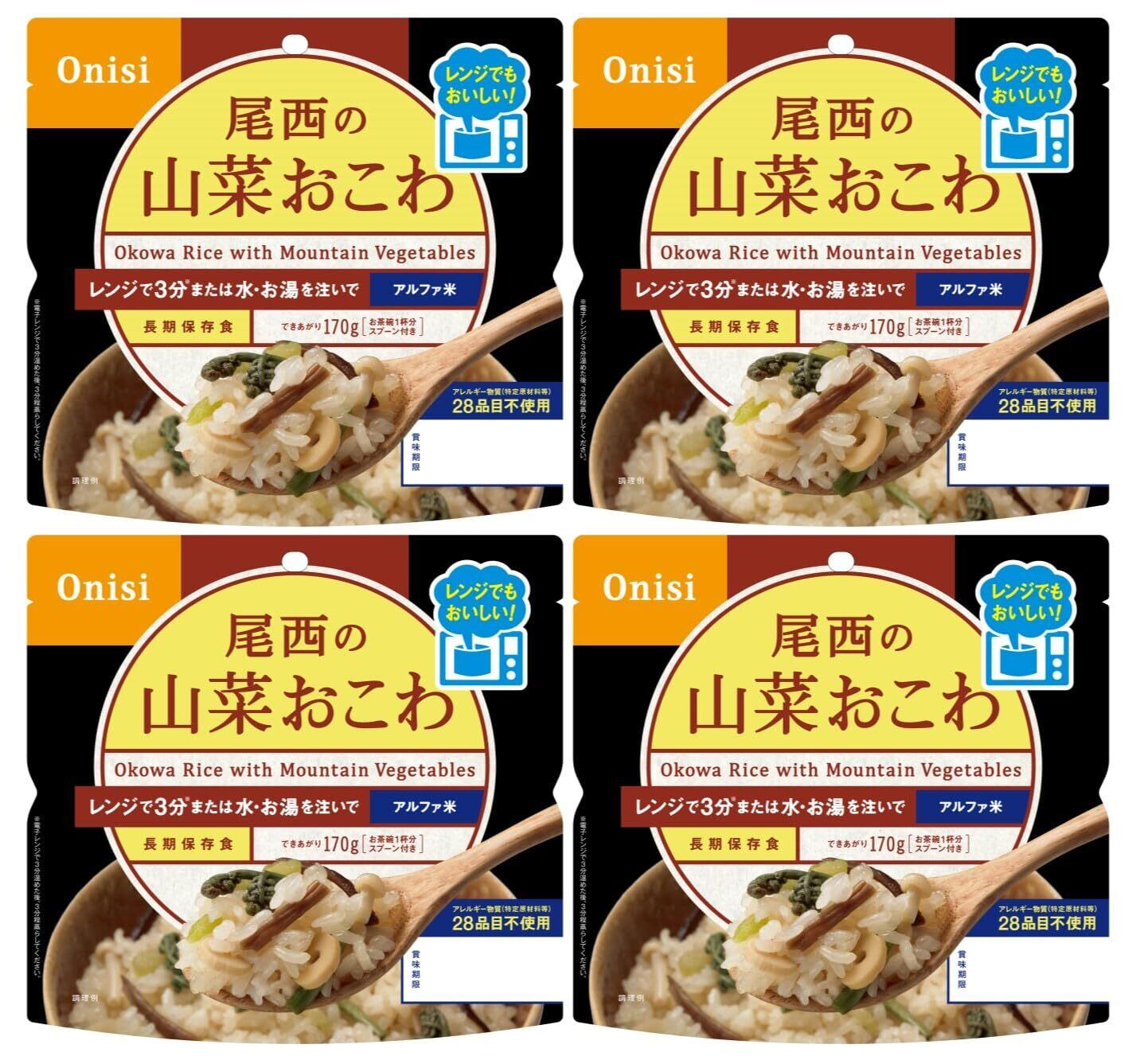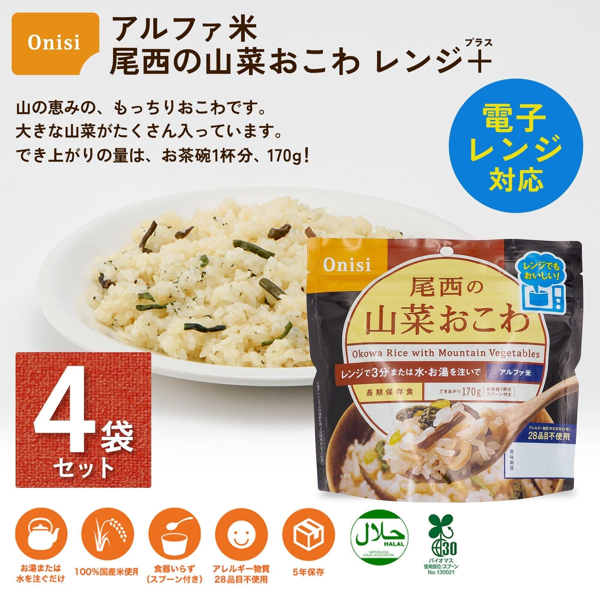尾西食品 アルファ米 レンジプラス 山菜おこわ 80g×4袋 レンジ調理対応 非常食 保存食 長期保存