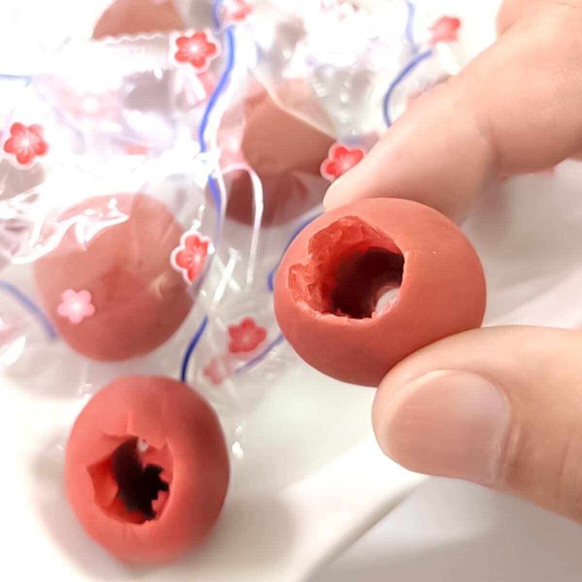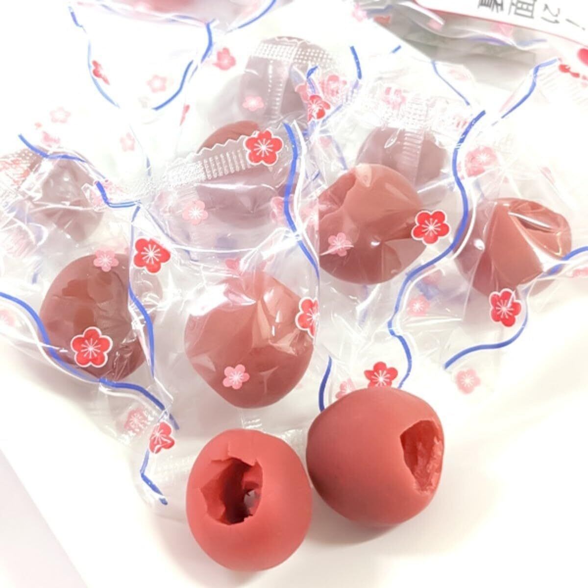 梅(中国産)、漬け原材料[醸造酢、食塩、りんご酢、酒精、かつおぶしエキス]、調味料(アミノ酸等)、乳酸カルシウム、酸味料、甘味料(ステビア)、香料、みょうばん、着色料(赤102)