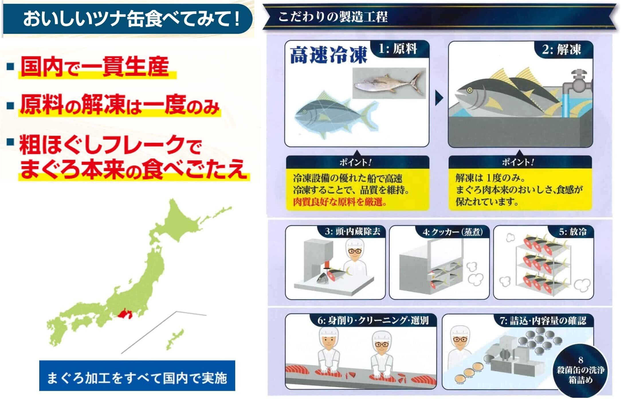 ■こだわりのまぐろ原料を使用した食べごたえのある「あらほぐし」のツナフレークです。手作業で魚肉の血合い部分を取り除くクリーニング作業を2重に実施することにより、食べごたえのある美味しいツナを実現いたしました。