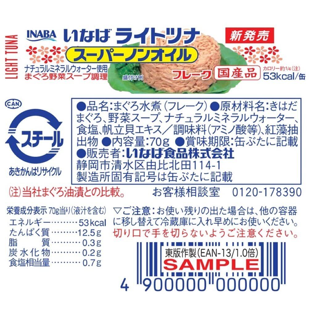 いなば食品 いなば 国産ライトツナスーパーノンオイル 70g×24缶