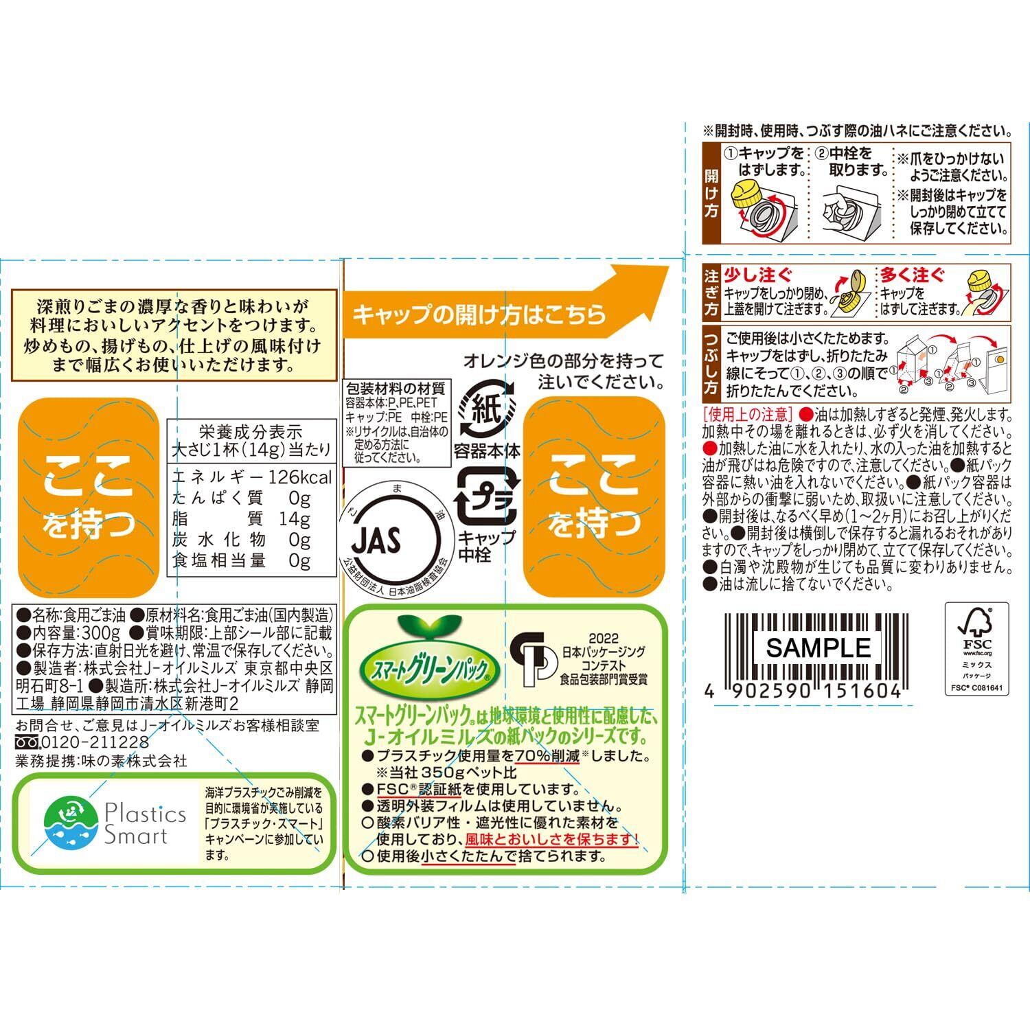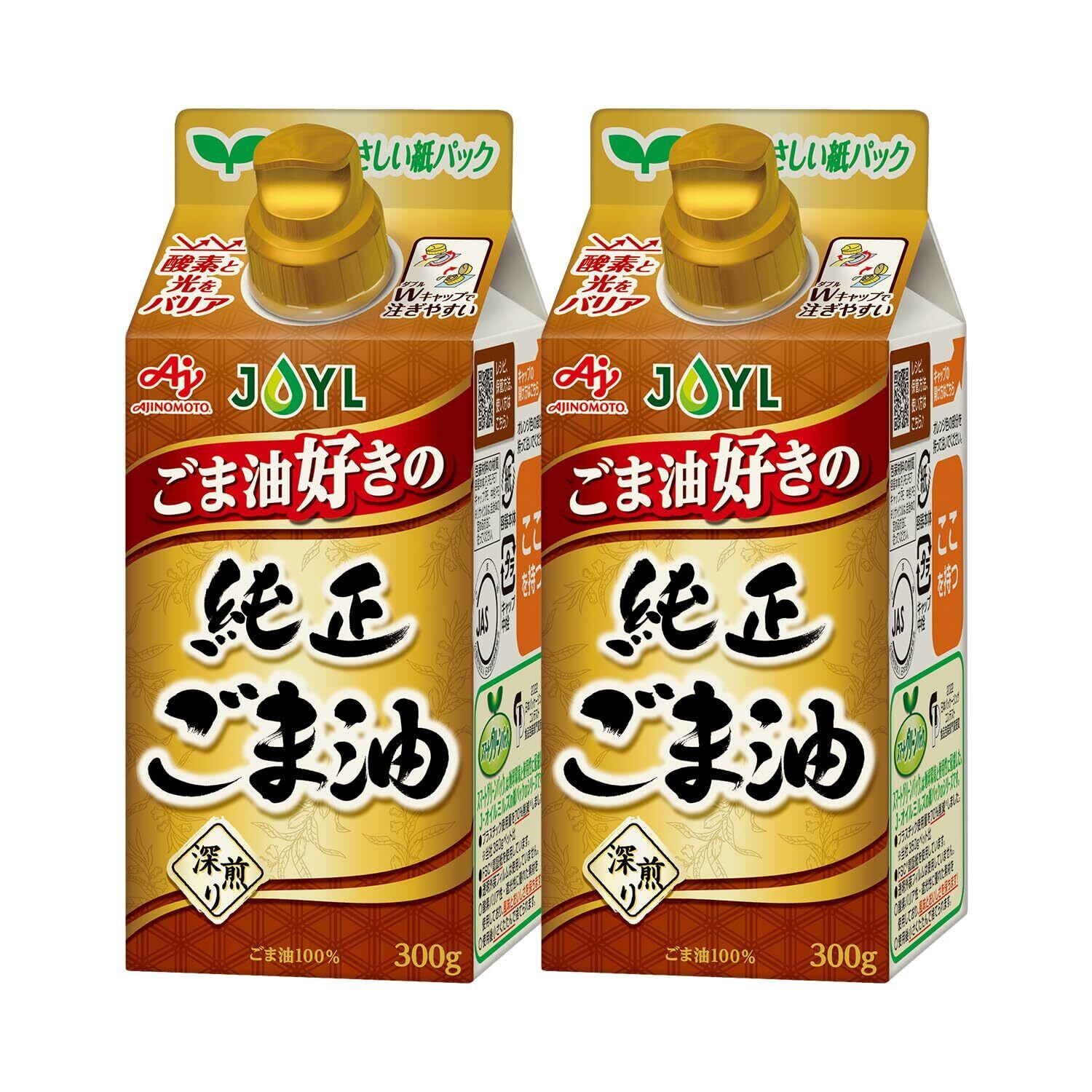 JOYL ごま油好きの 純正ごま油 (ゴマ油 100% 捨てやすい 紙容器) 味の素 J-オイルミルズ 紙パック 300g x 2本