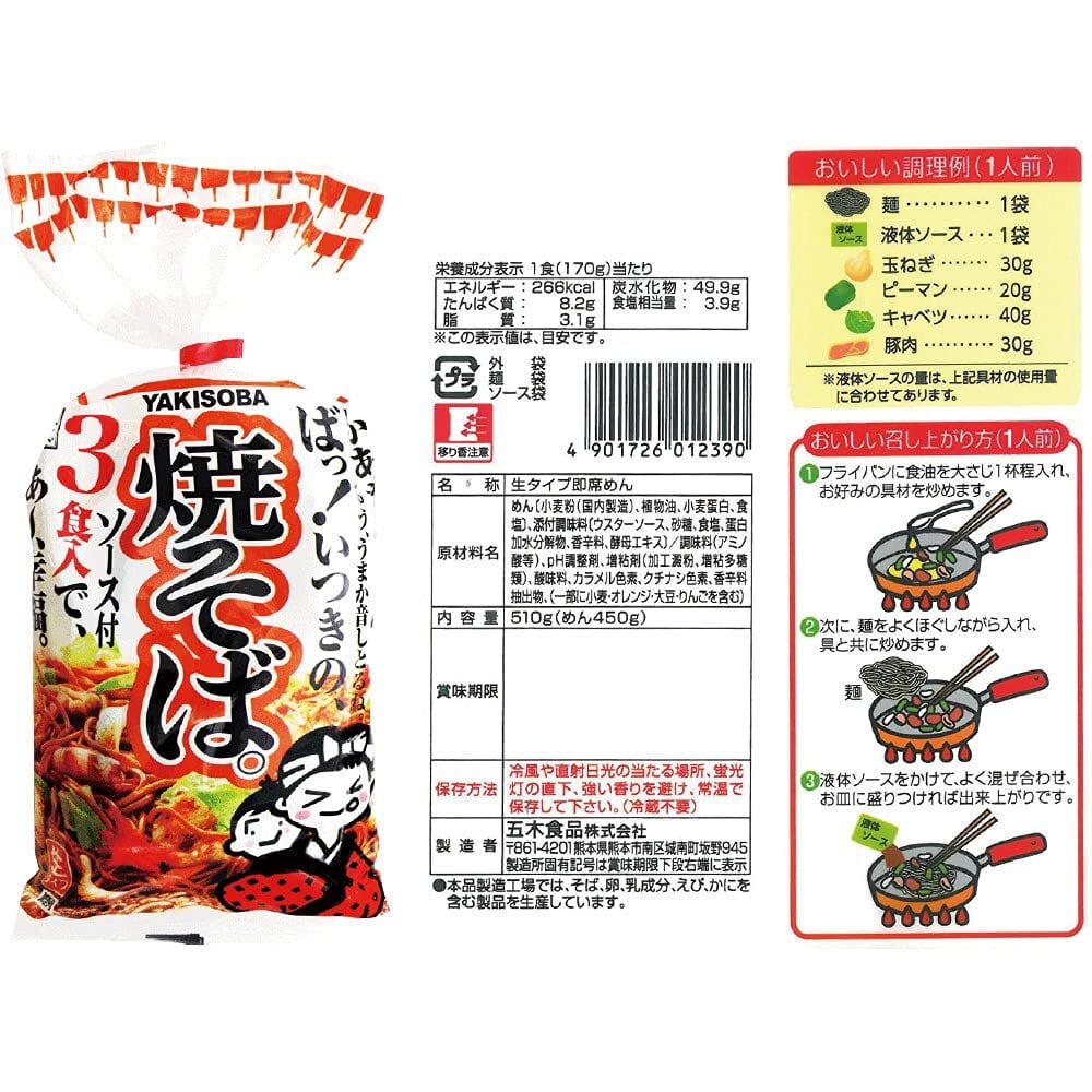 五木食品 3食入焼そば 510g×6個(常温保存商品)(生タイプ即席麵)